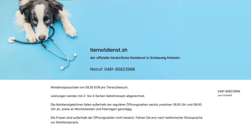 Über die Internetseite Tiernotdienst.sh erfahren Sie weitere Einzelheiten einschließlich der heute dienstbereiten Praxis.